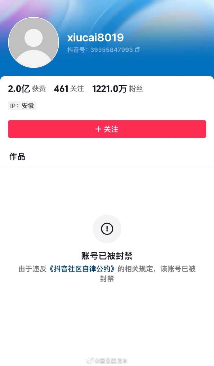 9月2日,@国是直通车 发现,近日颇受关注的主播“秀才”账号已被封禁。对此,抖音相关负责人表示,该账号违反平台相关规定,已封禁。据知情人士透露,秀才近期被举报存在违法行为,这可能是他被封禁的部分原因。数据显示,秀才全网粉丝数超千万。
