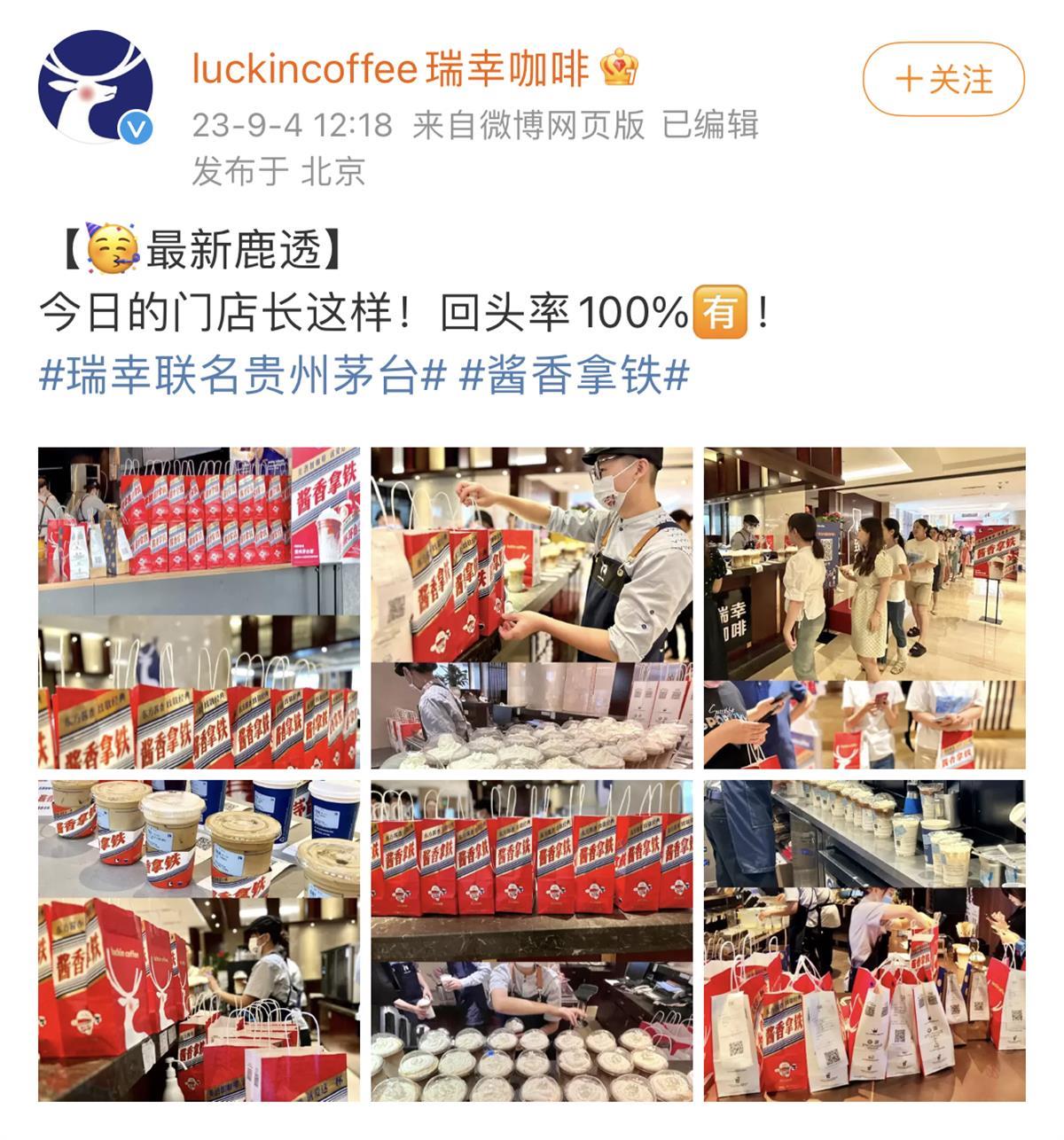 9月4日,贵州茅台与瑞幸咖啡联合推出的“酱香拿铁”在瑞幸咖啡全国门店上线,迅速火遍全网。“酱香拿铁”“瑞幸回应喝茅台联名咖啡能否开车”“满杯茅台去咖啡液”“瑞幸客服回应酱香拿铁不加咖啡液”等多个相关话题冲上微博热搜。不少消费者调侃道“人生第一口茅台竟来自瑞幸”。