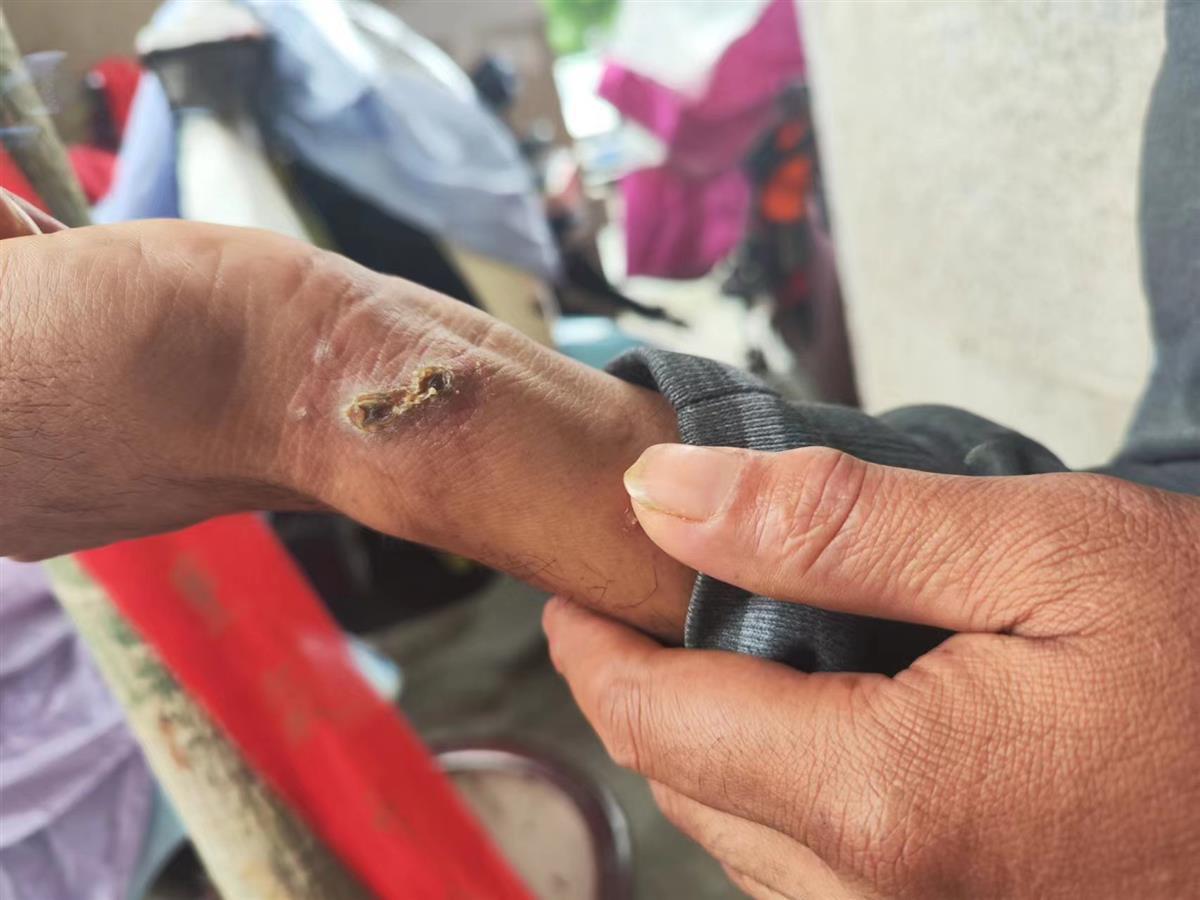 陈立炳的手被烫伤(受访人供图)