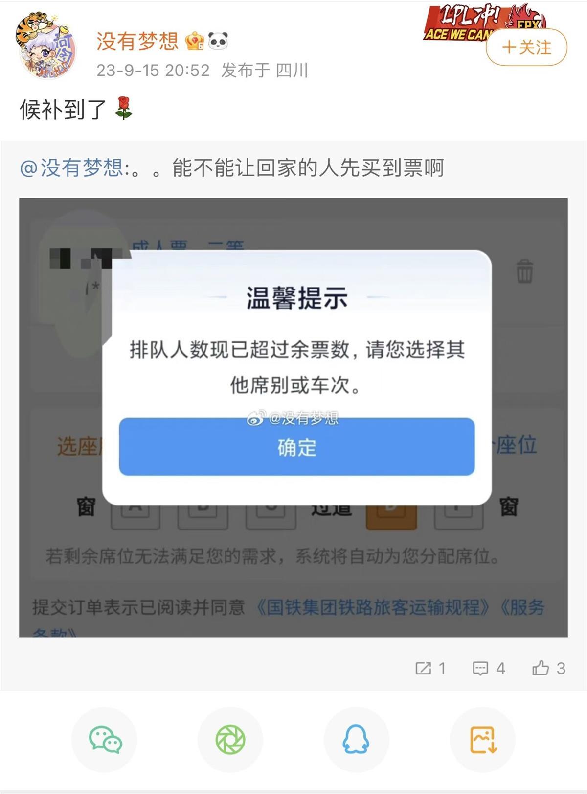 因全国各地旅客出行意愿强烈,9月15日开售假期第一天车票时,许多热门方向的车票开售即候补,可以说是相当抢手。因不同车站起售时间不同,从早上到午后陆续放票的线路,让无数旅客加入一波又一波的“候补大军”。