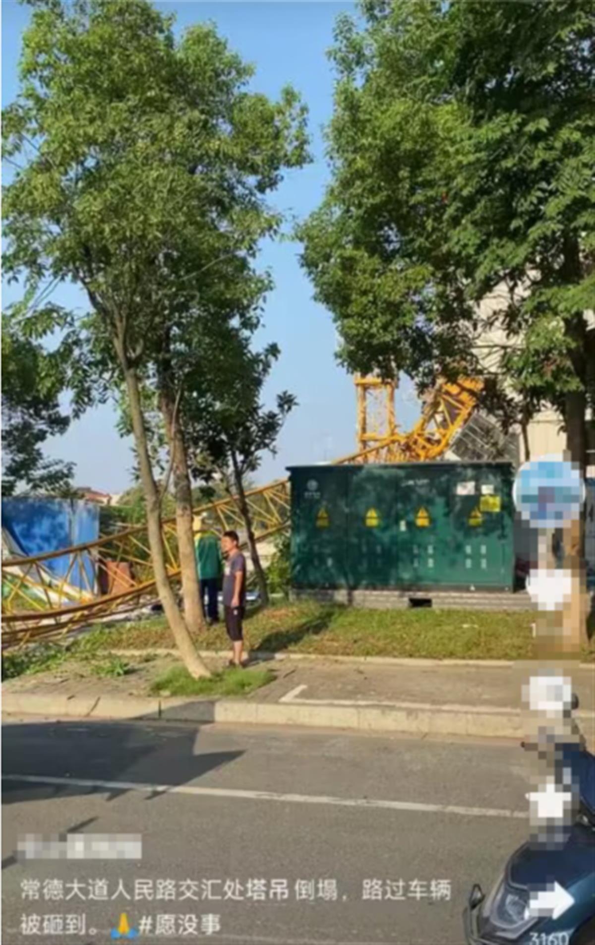 9月17日,常德市武陵区常德大道一家酒店工作人员告诉极目新闻记者,当日早晨酒店附近一个工地的塔吊发生坍塌,人员伤亡情况不清楚,目前该路段的交通已经恢复了正常。