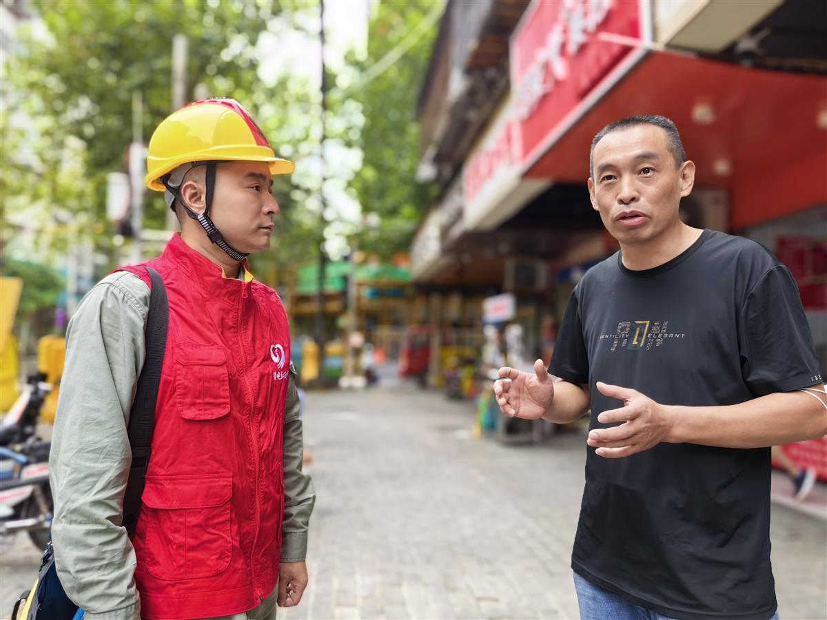 9月16日,记者在“茗记热干面”采访时,国网武汉供电公司汉口客服中心“鄂电红马甲”正在对该店的线路负荷和安全情况进行上门查验。“我这边有两个门面,之前申请过电力增容,供电人员很快上门完成了,效率非常高,现在可能还需要再增容。”明老板一边说,一边带着供电人员来到店后的电表箱进行查验。