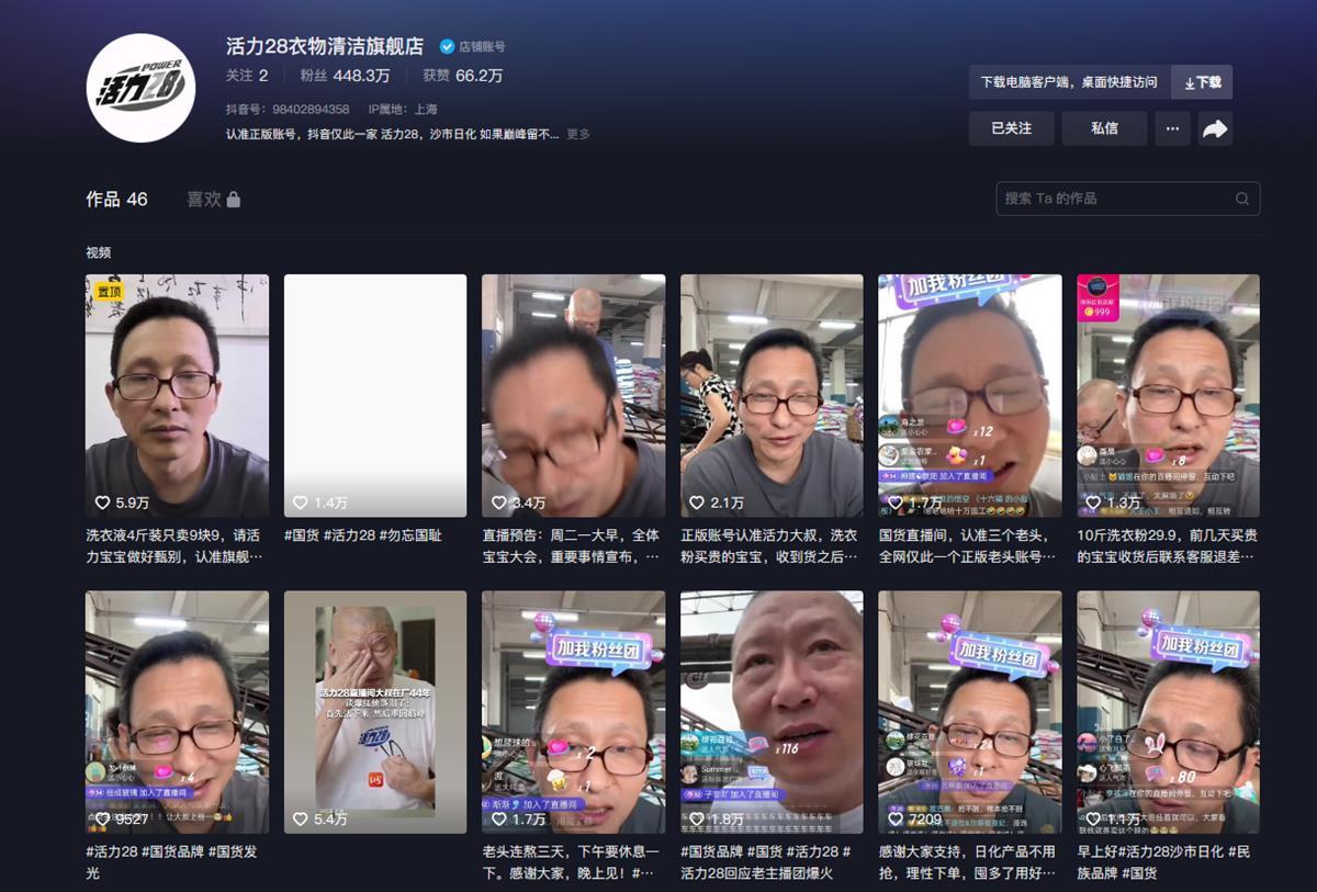 将“活力28”带火的,是来自“活力28”成都代工厂的三名50多岁的男员工。他们组成的“中老年主播团”现身直播间带货,因为话术“不够专业”,操作不够熟练,反而成为网络热梗,深受网友喜爱。短短几天时间,直播带货的“活力28衣物清洁旗舰店”账号粉丝数已突破440万。