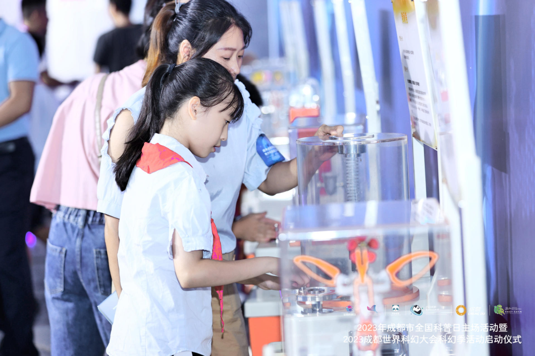 ▲2023年成都市全国科普日主场活动暨2023成都世界科幻大会科幻季活动中,孩子们沉浸式体验科幻魅力