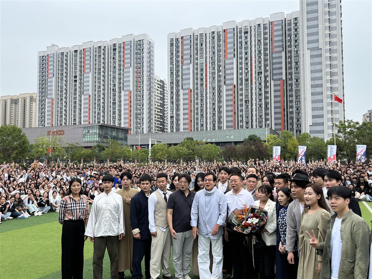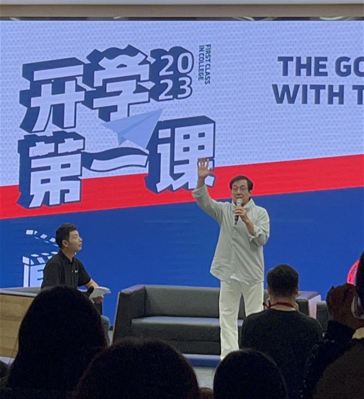 随后,成龙院长亲切地与同学们分享起自己的成长经历。“很幸运你们生活在这个科技时代,我们小时候没有现在这么好,从早就开始练功。”在分享后,成龙院长也和学生们做出约定:希望未来的几年,他能在各个剧组看到各位同学。