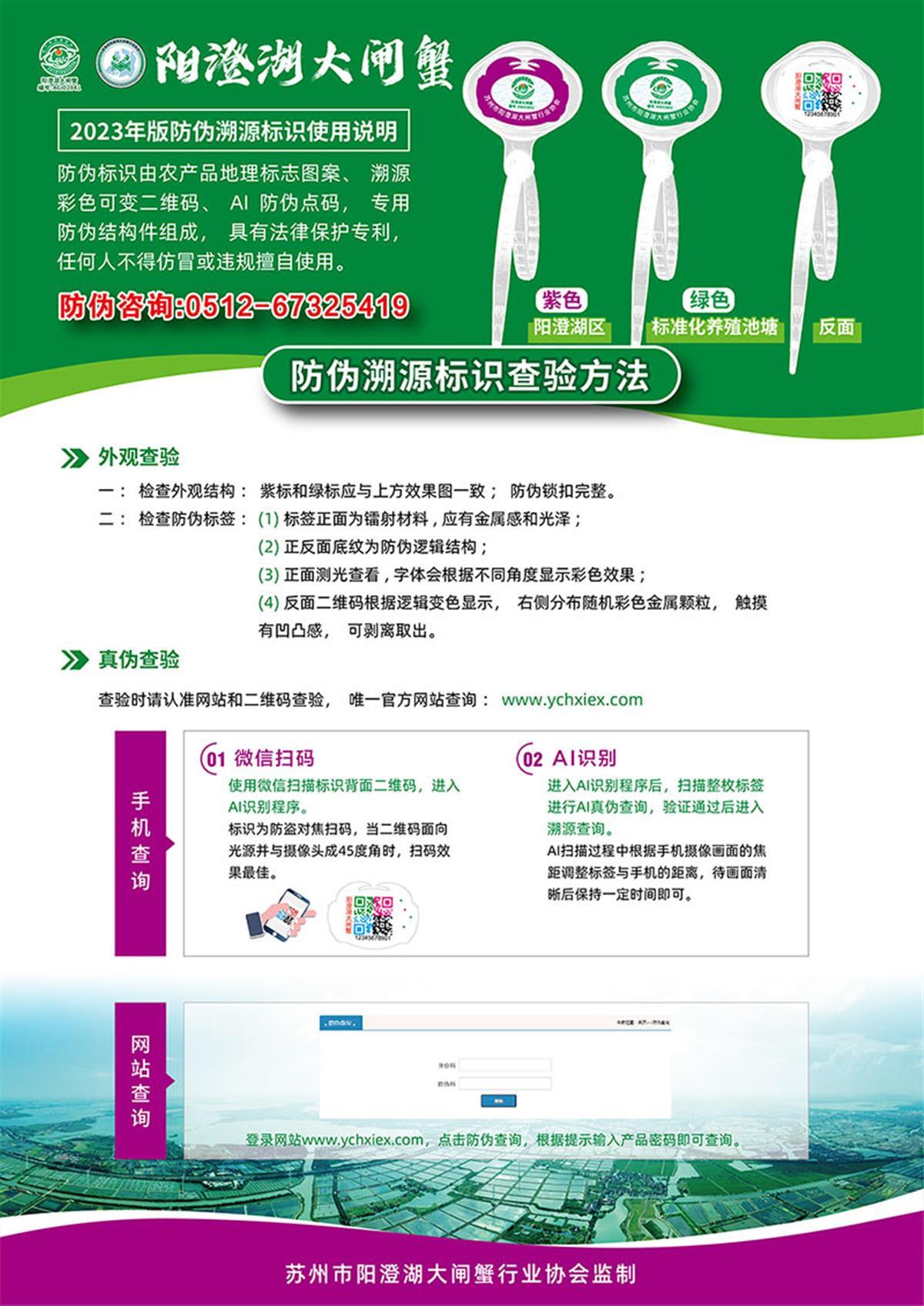 2023年阳澄湖大闸蟹防伪标识使用说明(图片来源:苏州市阳澄湖大闸蟹行业协会网站)