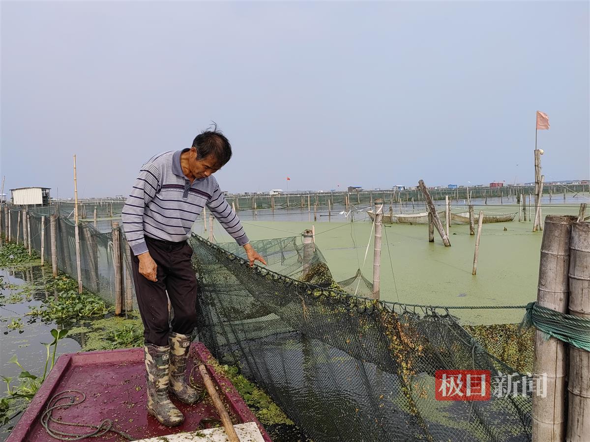 在阳澄湖镇清水村葛家港,蟹农朱炳根早已开始清理养殖场水面的浮萍,为收获螃蟹做准备。他家的养殖场位于阳澄湖中湖围网养殖区域,共有10亩水域。去年的高温天气导致螃蟹大量减产,他非常庆幸今年的天气很正常,这意味着螃蟹产量肯定比去年高。25日开捕当天,他家总共收获100多只螃蟹。去年他家收获螃蟹6千多只,估计今年比去年要高出50%,达到9000多只。