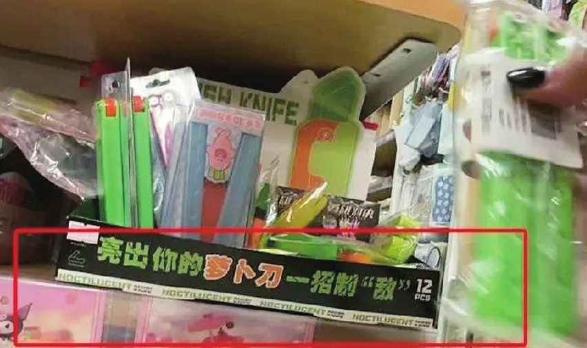 “萝卜刀”在吸引大众目光的同时,也掀起了一股销售热潮。在线下商店,记者看到不少商家将“萝卜刀”放在店铺最明显的位置,吸引消费者购买。一位商家告诉记者,“萝卜刀”售价在一元到几十元不等,近两个月有许多家长和学生前来购买,销量十分可观,有的时候一天能卖出十几把“萝卜刀”。