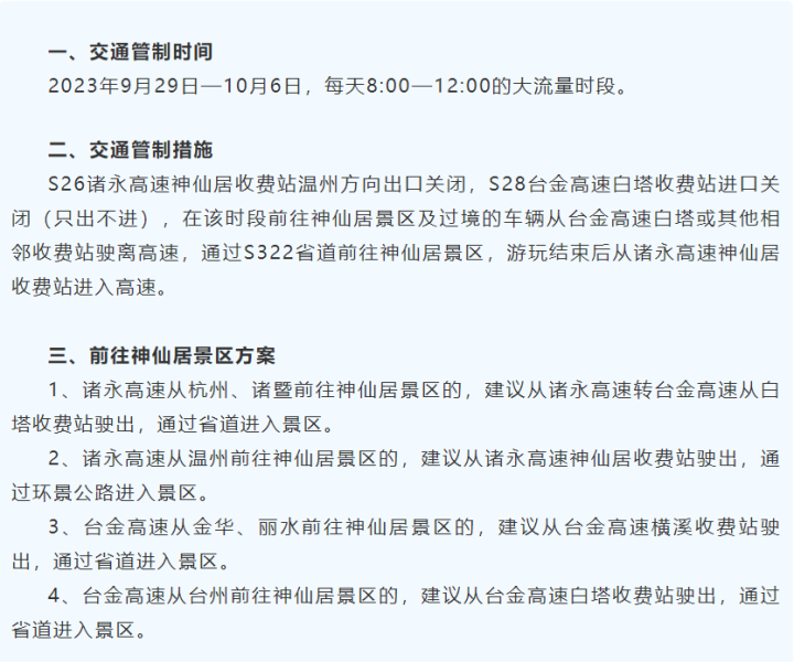 早前,神仙居景区曾发布过交通管制的时间和措施。