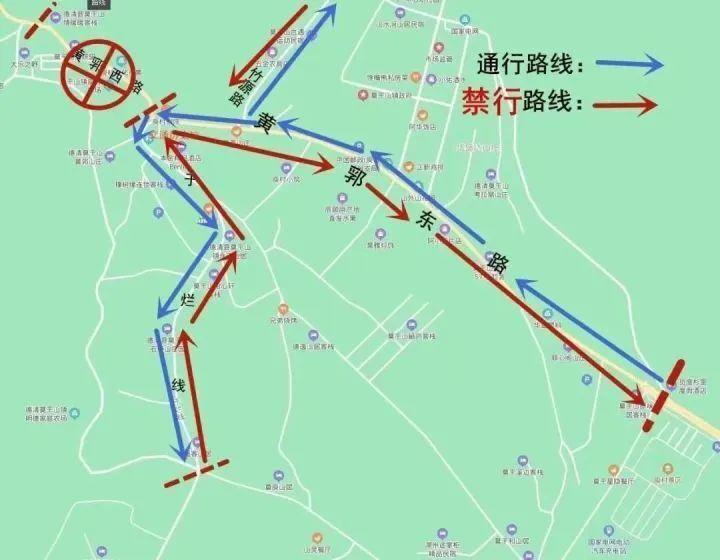 1.黄郛东路(红绿灯至交通历史馆)实行由东往西单向通行。