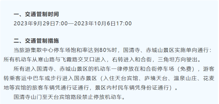 2、景区接待机动车数量若超过承载量,将关闭景区入口,对车辆进行劝返,请听从当地工作人员安排。