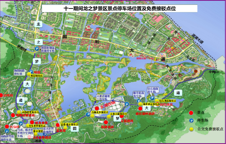 “十一”期间龙之梦景区景点、停车场位置及免费接驳点位