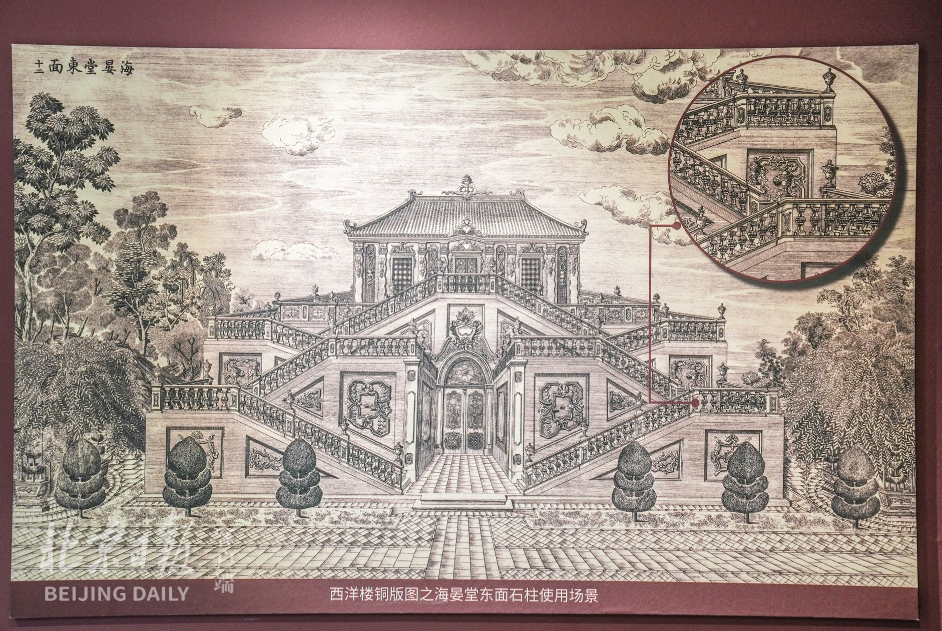如今,展览中还配合展出了圆明园西洋楼铜版图,观众也能够从海晏堂、谐奇趣、方外观、养雀笼、远瀛观等地的昔日美景中,一览这些分布于庭院、喷泉池边、楼梯、楼层平台等处的精美石柱,感受其中蕴含的中西合璧之美。