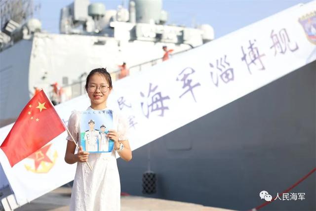 ▲前来送行的华人华侨在淄博舰旁合影留念。方思航 摄