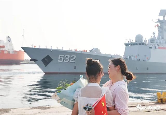 我驻阿大使李凌冰、武官武新颜和使领馆工作人员、中资企业代表、华人华侨等百余人到码头为我编队送行。