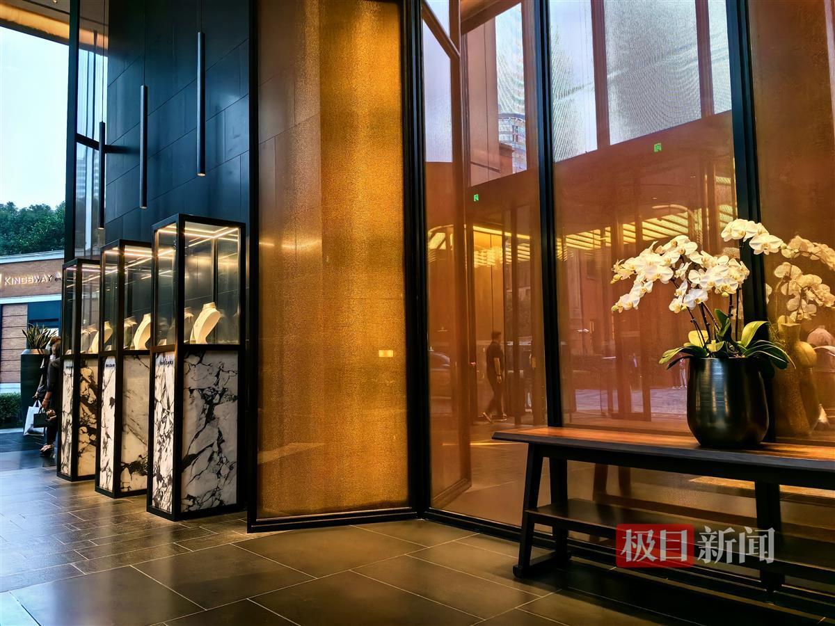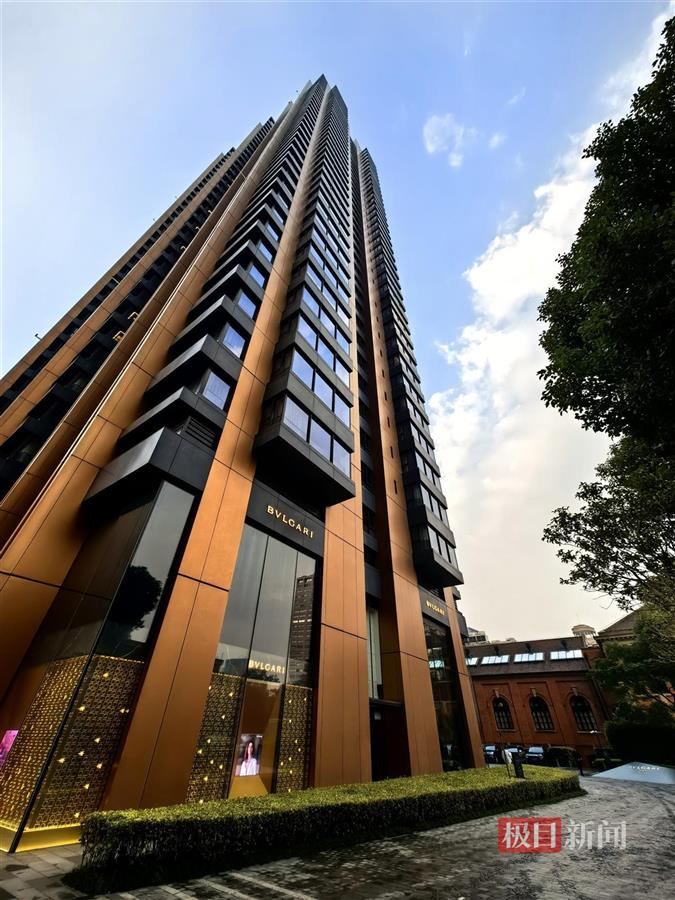 上海宝格丽酒店位于静安区苏河湾,距离苏州河100余米,距外滩不到1公里。10月15日下午,极目新闻记者来到上海宝格丽酒店。酒店所在大楼共有48层,负一层、1至2层、40至48层为酒店,其中47层为意大利餐厅及宝格丽酒吧,48层为露台酒吧。一楼大厅陈列着在售的宝格丽珠宝、手表等产品,还有宝格丽专卖店。酒店门外是一处休闲花园。