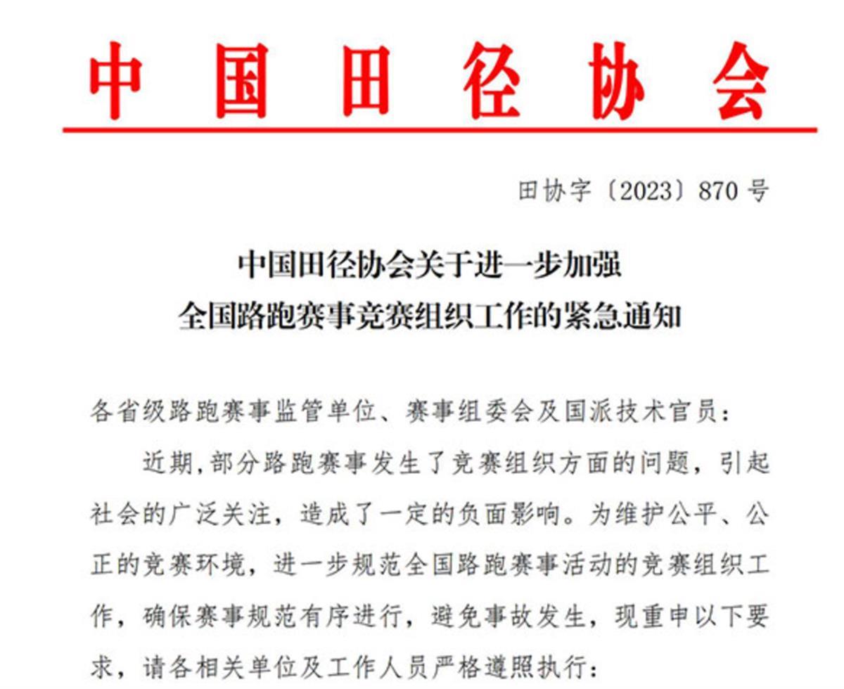 中国田径协会紧急发声(图片来源:中国田协官网)