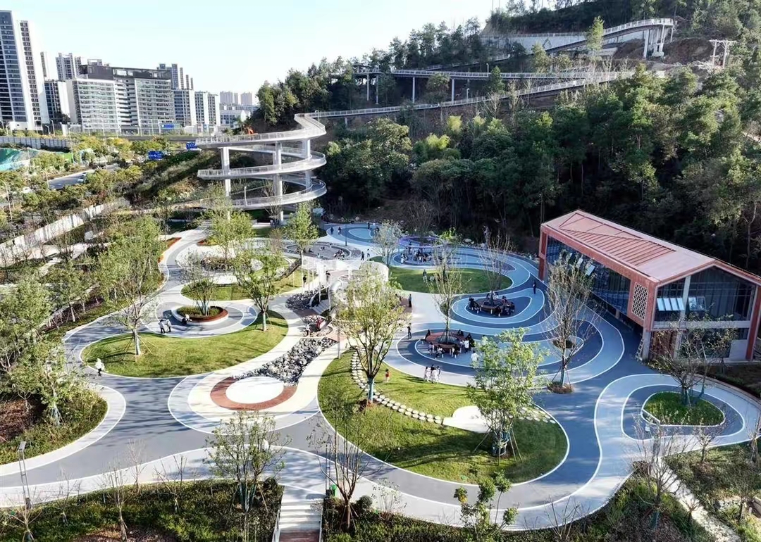 健康步道设计有3处螺旋塔和一处具备电梯和步行功能的登山口,因地制宜建设高架步道、小支墩步道、贴地段步道、人行隧道,让健康步道无障碍、易通达、高颜值、智慧化、更安全,让市民游玩更轻松。