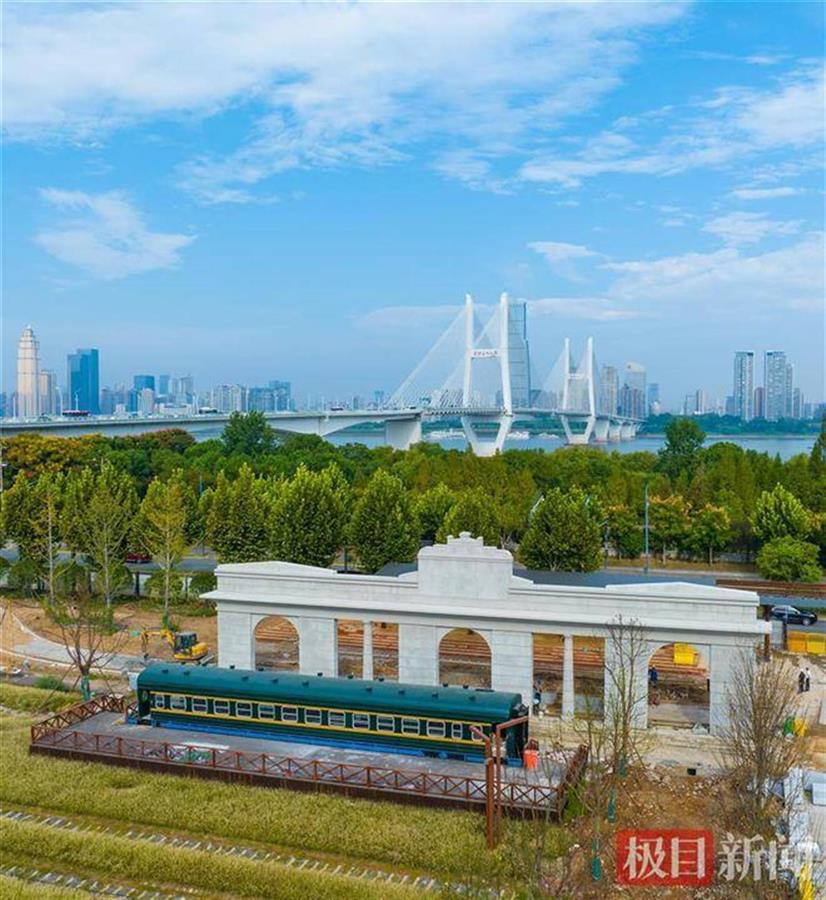 “既可徜徉百里生态文化长廊欣赏武昌滨江景观,又可以回味复原版老火车站立面景墙、上游型蒸汽机车牵引的绿皮车厢、铁轨、枕石、信号灯等铁路元素带来的城市特色工业风貌。”武昌区政府副区长孙羿介绍,四美塘铁路文化遗址公园前身为武九铁路北环线武昌北站旧址,建于1909年,全国南来北往的货物通过火车汇聚于此。在这里,市民可以深刻感受历史遗迹与滨江景观的交织。