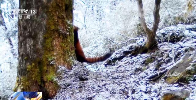 在下一个画面中,雪豹也一反常态,打破了高海拔雪线附近的常规活动路线,下山进入到海拔3000米左右的大熊猫和川金丝猴的栖息地,进行了三个小时的游览。
