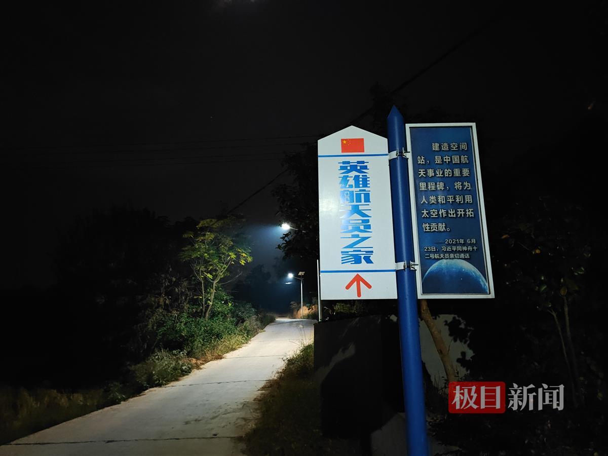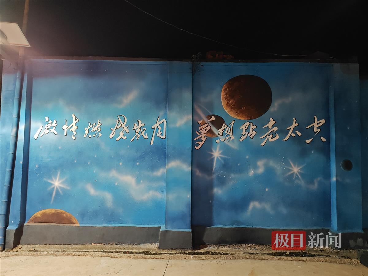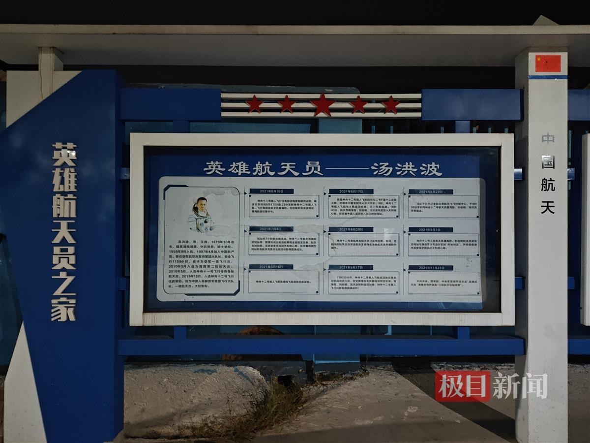 深秋时节,漫步在飞栏村的航天路上,处处可见的航天元素指路牌,为整座村子增添了更多科技感。而航天路一端的尽头,便是“英雄航天员”汤洪波的家,旁边蔚蓝色的文化廊介绍着汤洪波的成长经历,一幅“激情燃烧岁月,梦想点亮太空”的墙绘颇为夺目。