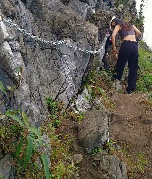 当地村民在险要路段加装了铁链(网络视频截图)