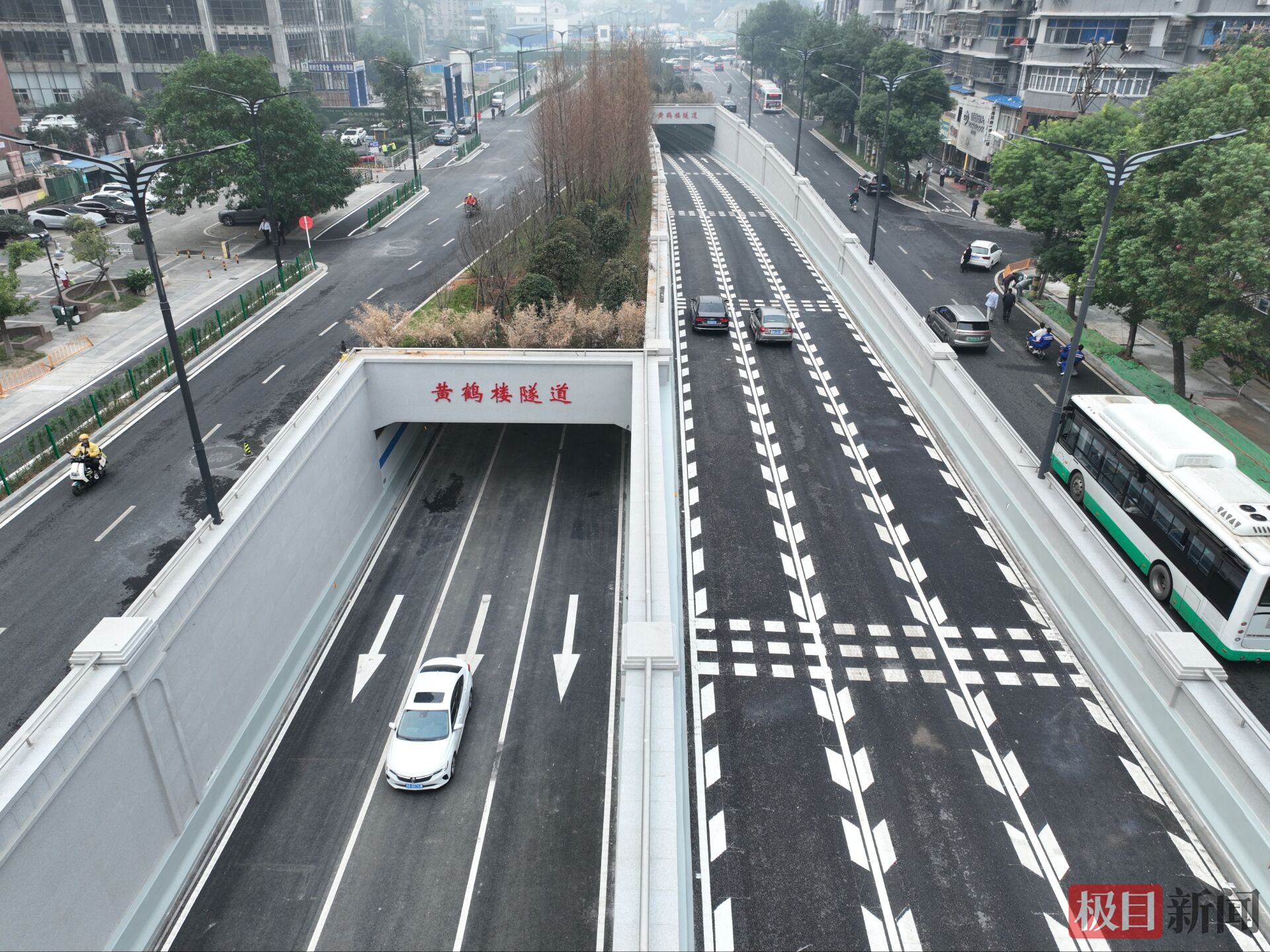 这是国内最大单管双层城市道路隧道。极目新闻记者驱车体验,从中山路到张之洞路只需5分钟,其中通过黄鹤楼隧道段仅需3分钟。