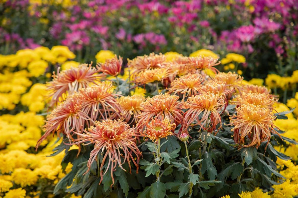 据了解,本届菊展以“花漾洪山、绿动武汉”为主题,来自全区各街道、高校、企业等10个单位现场布展,共设置展点10个,面积超过2000平方米,展出金风万里、国华流美、灯下舞娘、归元红丝等500余个菊花品种。