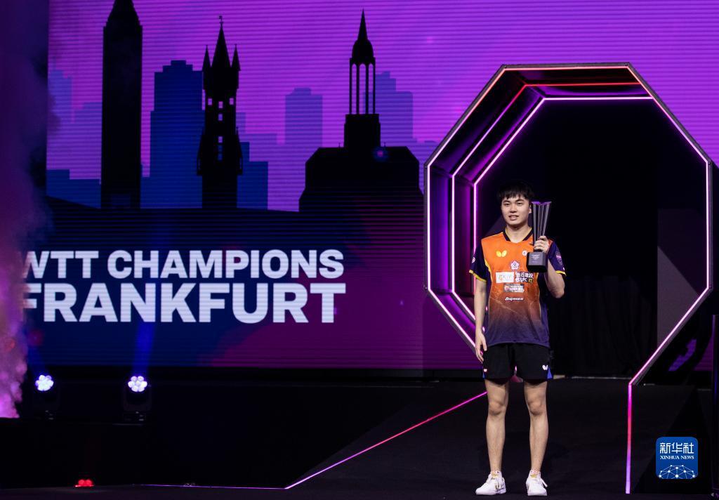 当日,在德国法兰克福举行的2023世界乒乓球职业大联盟(WTT)法兰克福冠军赛男子单打决赛中,中国台北选手林昀儒以4比1战胜中国选手马龙,夺得冠军。