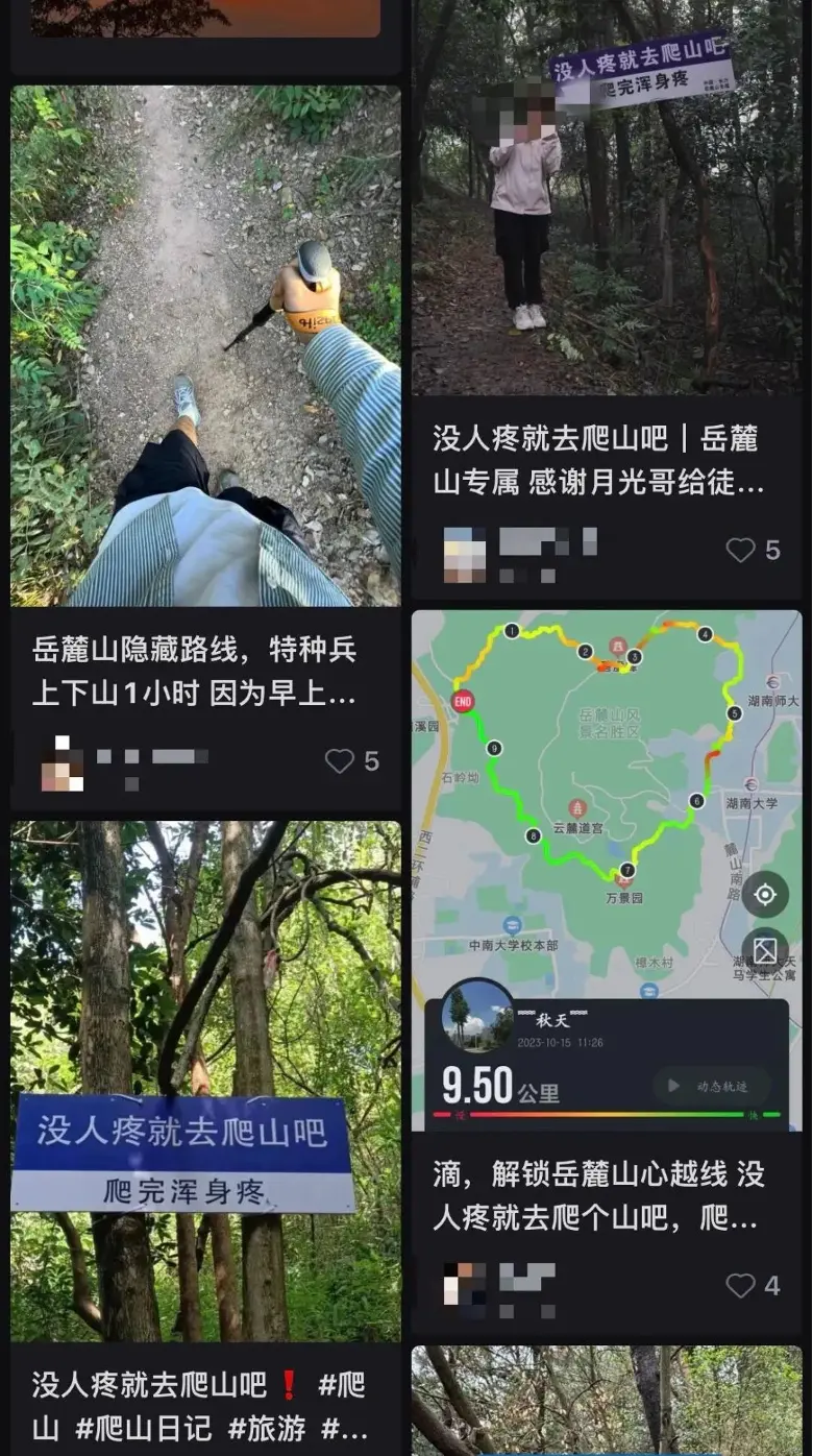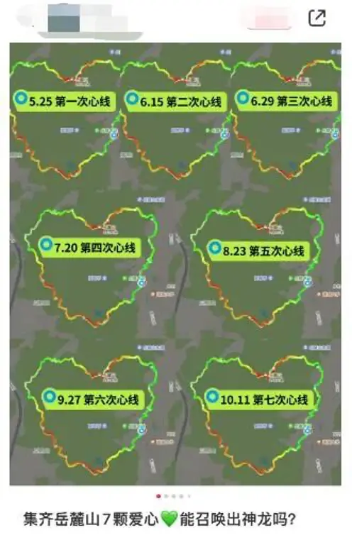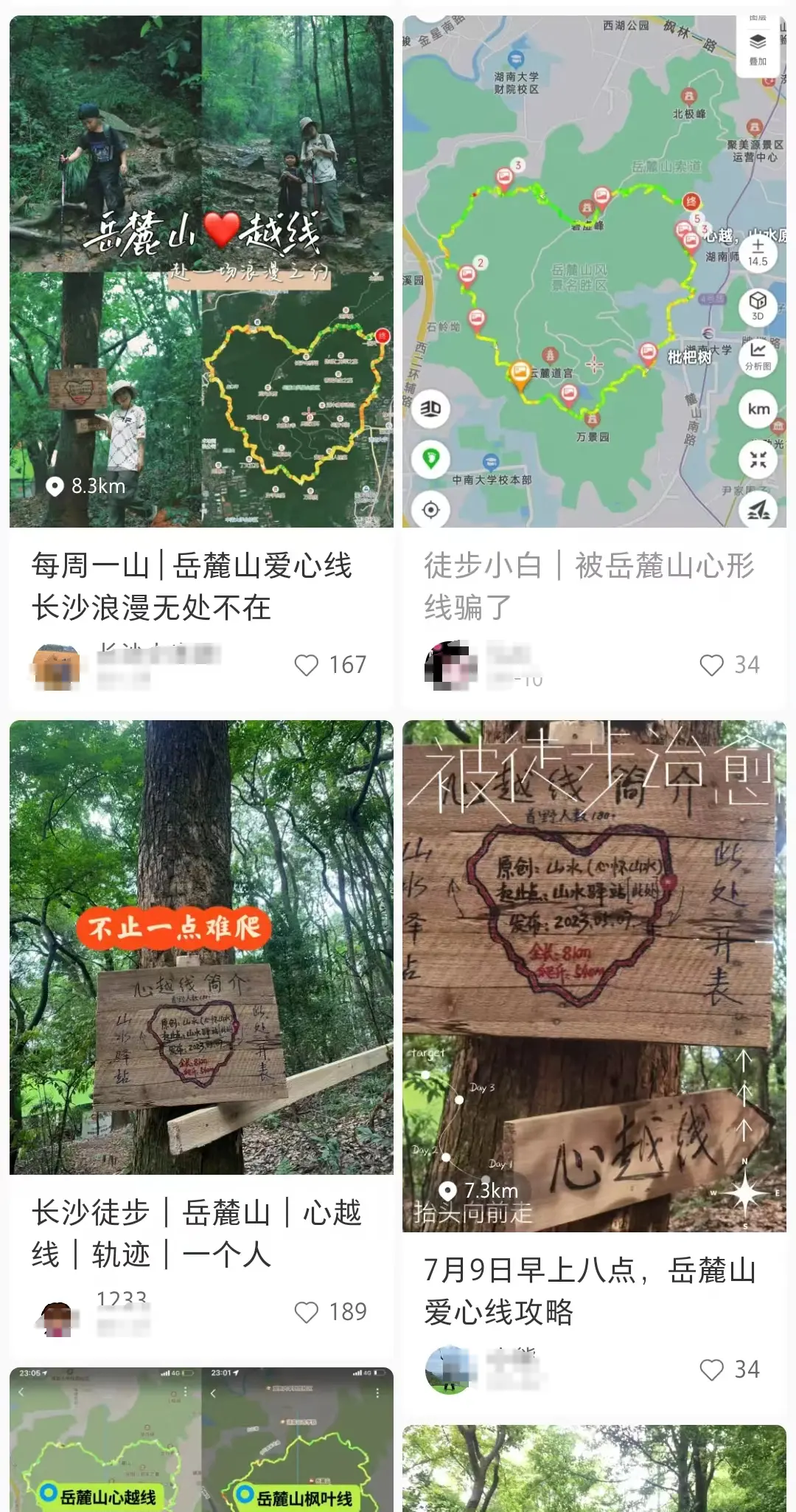 除强身健体外,徒步社交也吸引着年轻人。岳麓山“心越线”在网上开始走红,这条由网友自行开发的心形路线全长8千米,走完刚好可以在地图上画出一个心形。