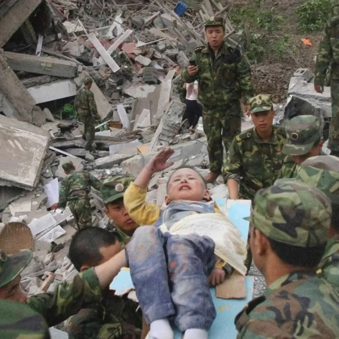2008年,记者杨卫华在汶川地震震区,他第一个发现在废墟中哭泣的小郎铮。随后,杨卫华与八名解放军战士一起将小郎铮救出,并拍下了那张著名的“敬礼娃娃”照片。
