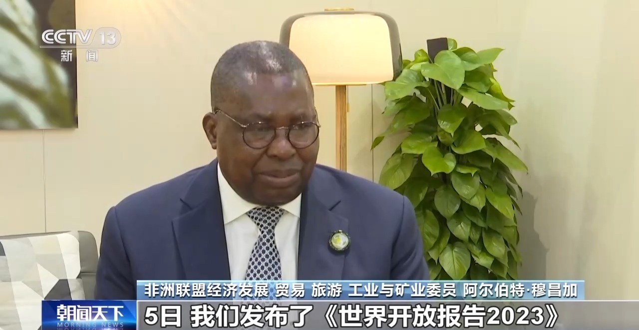 非洲联盟经济发展、贸易、旅游、工业与矿业委员 阿尔伯特·穆昌加:首先我要说的是,对外开放是中国重要的一项政策。5日,我们发布了《世界开放报告2023》,而且是第三次发布。在开放这个问题上,中国已经非常非常清楚地表示,会接受来自非洲和世界其他地区的进口。因此,非洲国家用实际行动来回应,就是带着他们能提供的商品来参展,这样他们就可以与那些有兴趣从非洲国家进口的中国公司建立业务关系。所以这是对中国政府促进开放政策的回应。