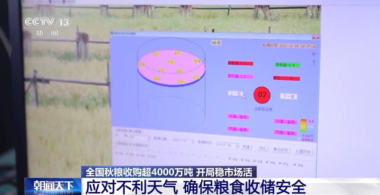 收好粮食,还要存储安全。为防止雨雪天气粮食受潮霉变,当地粮库加大巡查力度,实时对仓库通风巡查,通过云端数据平台对仓房粮食的温度、湿度进行电子监控、巡检,及时对粮仓通风口进行清理,并提前储备好备用仓,确保粮食入仓后如有不同程度的湿度变化可随时进行通风或换仓作业,全力保障粮食仓储安全。