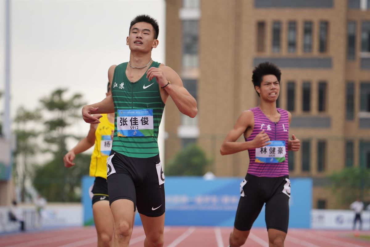 在陈妤颉之前,江苏队的另一位中学生张佳俊在男子200米比赛中同样跑出了双超大学甲、乙组冠军的成绩,最终以20秒96夺冠。