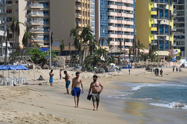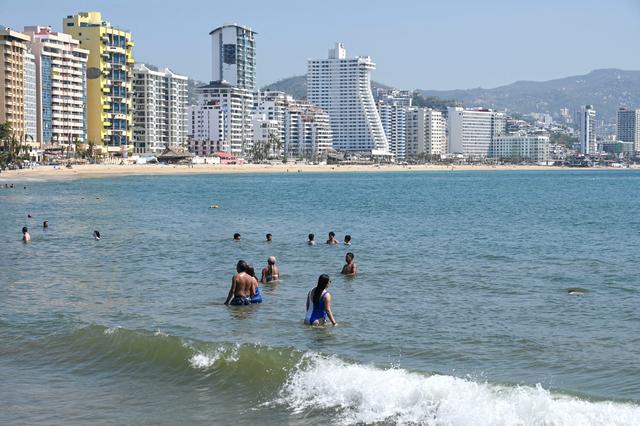 11月12日,在墨西哥阿卡普尔科,几名游客在海滩上休闲。新华社/法新