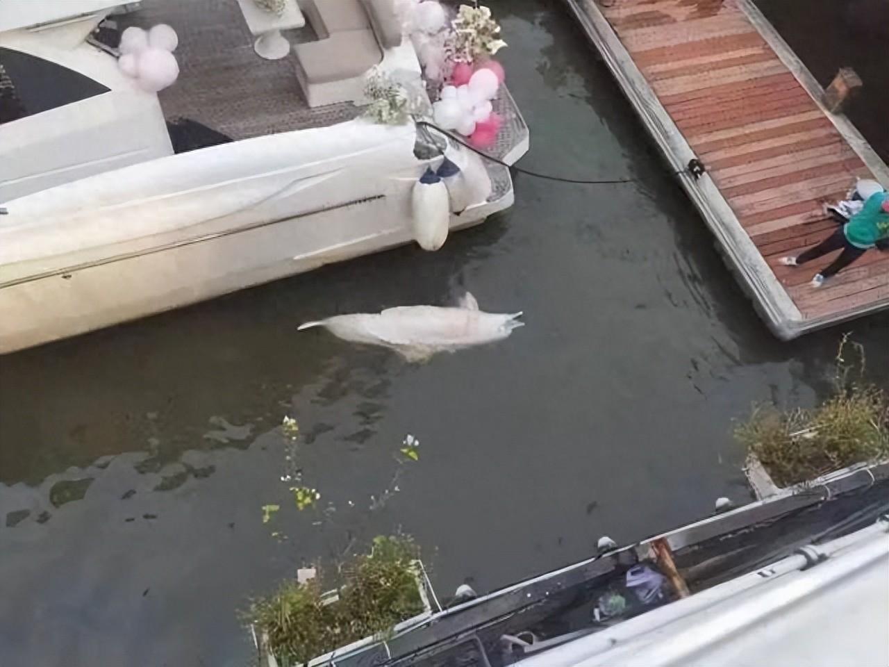 11月13日晚,广州海珠区太古仓码头发现一头海豚遗体,该海豚遗体漂浮在太古仓停靠的一艘游艇边,疑似为日前误入广州内河的中华白海豚。