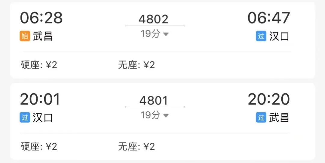 汉口往武昌方向5趟
