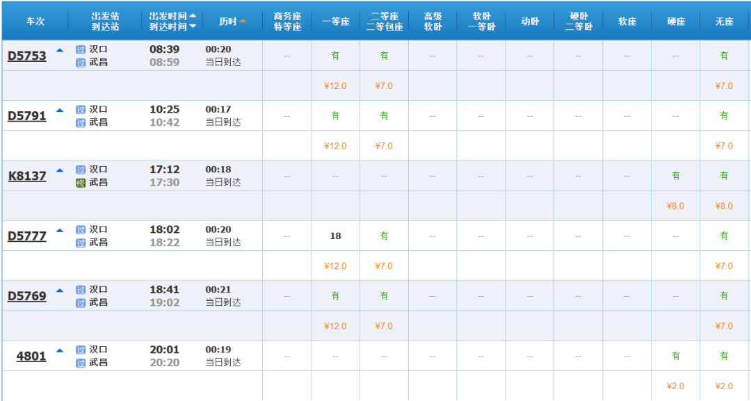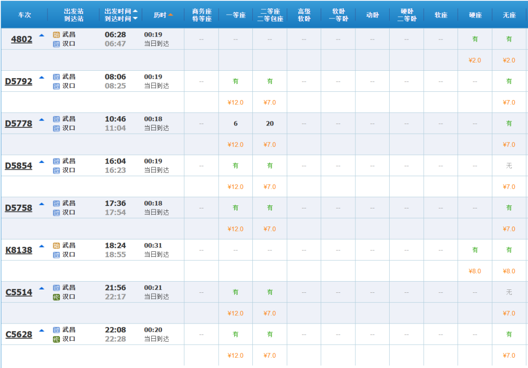 其中武昌往汉口方向8趟