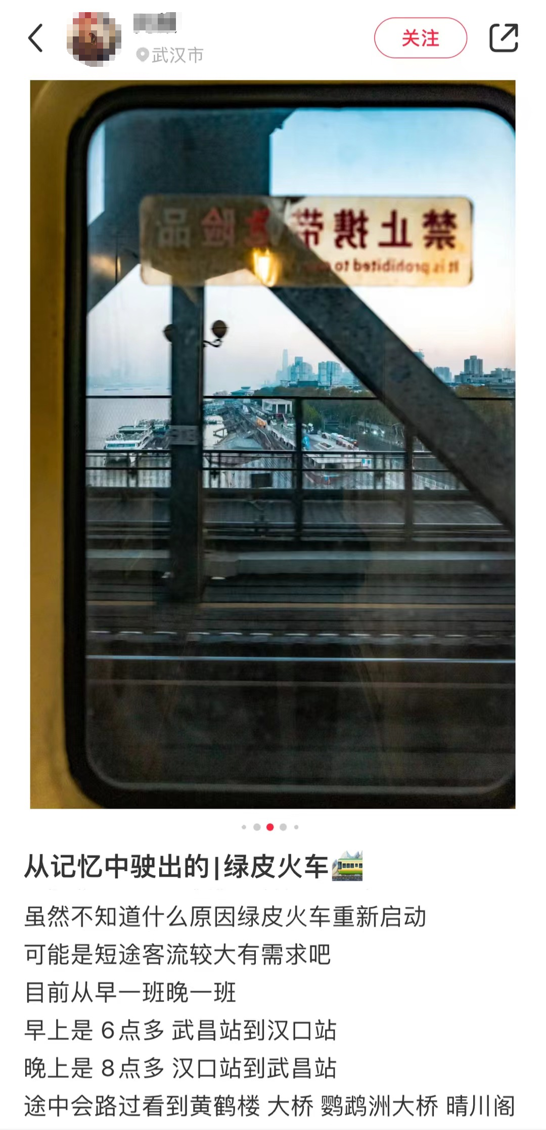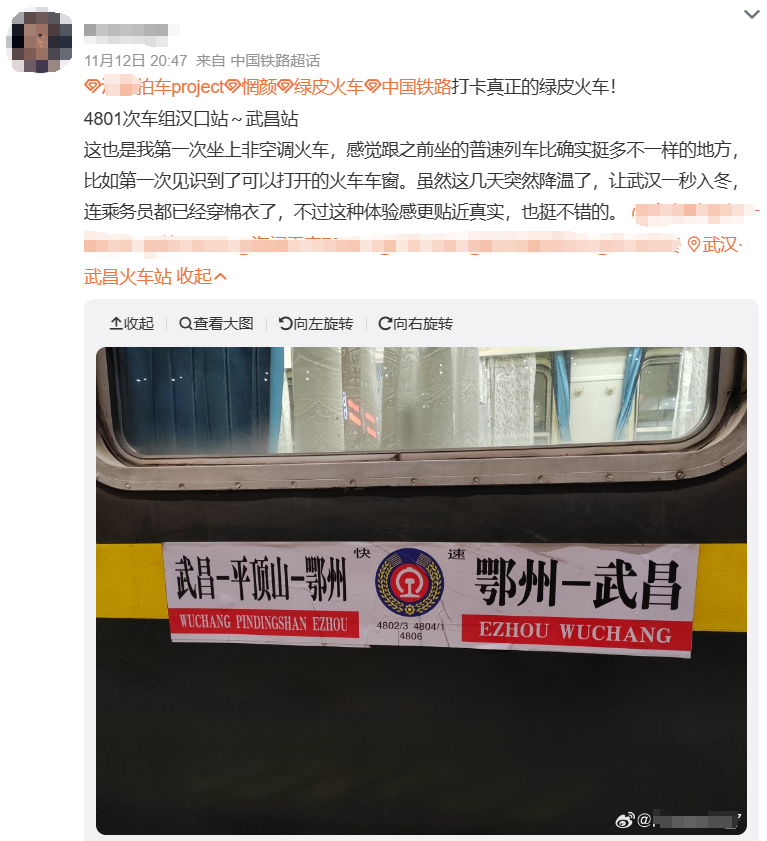 社交平台截图。还有网友介绍新开的临客列车途中会路过黄鹤楼长江大桥、晴川阁等武汉著名地标
