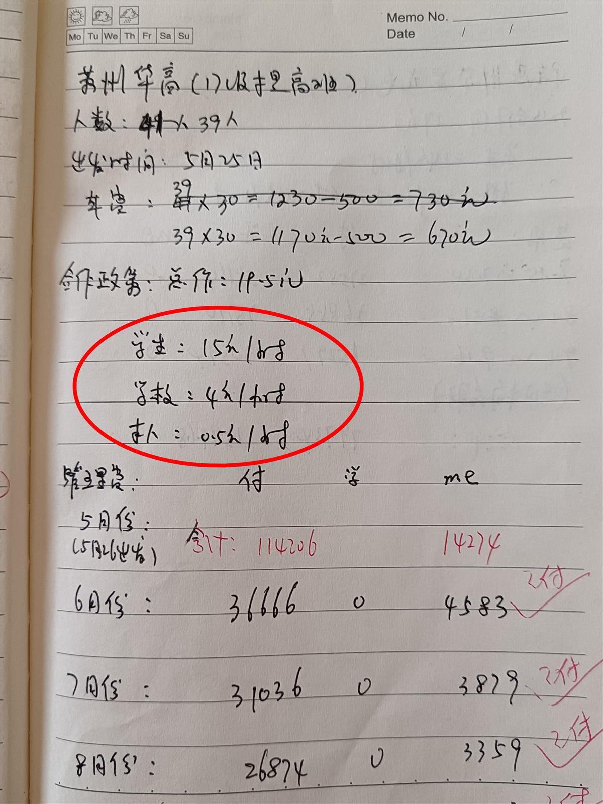 账本中记录一次39名学生的入场收益计费及分配情况(受访者供图)