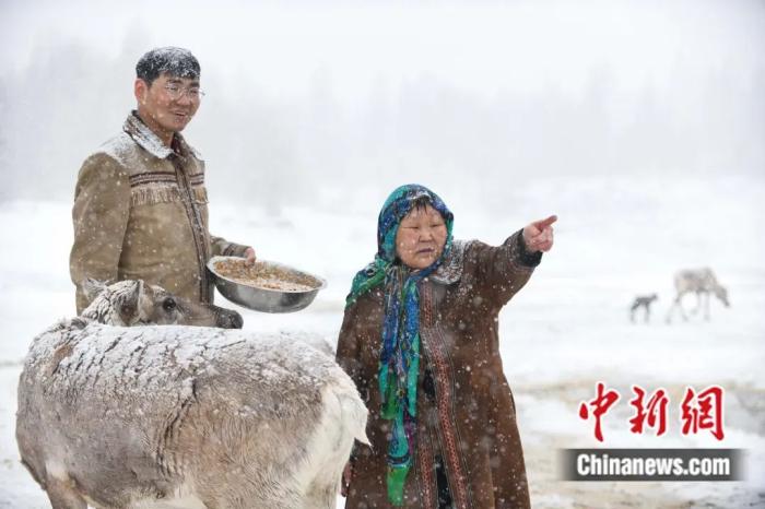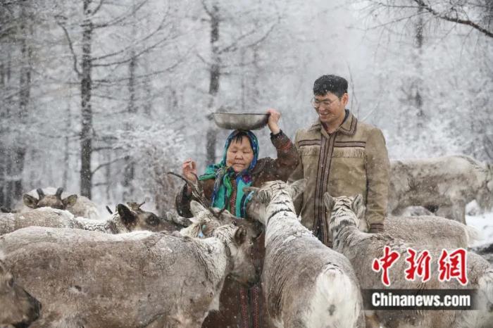 2019年,他接过部族的传承,和母亲共同照顾着鹿群,并开始以短视频的形式,给更多人展示使鹿鄂温克人原汁原味的生活状态。