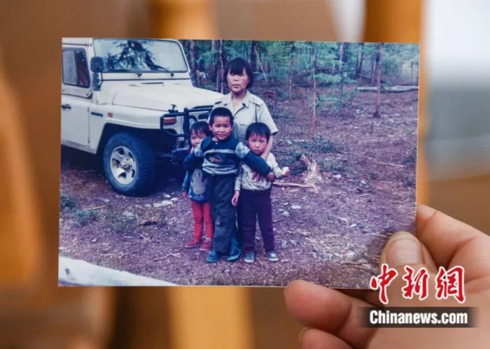 1998年夏,时年35岁的柳霞与儿子雨果及乌云、乌兰合影。王伟摄