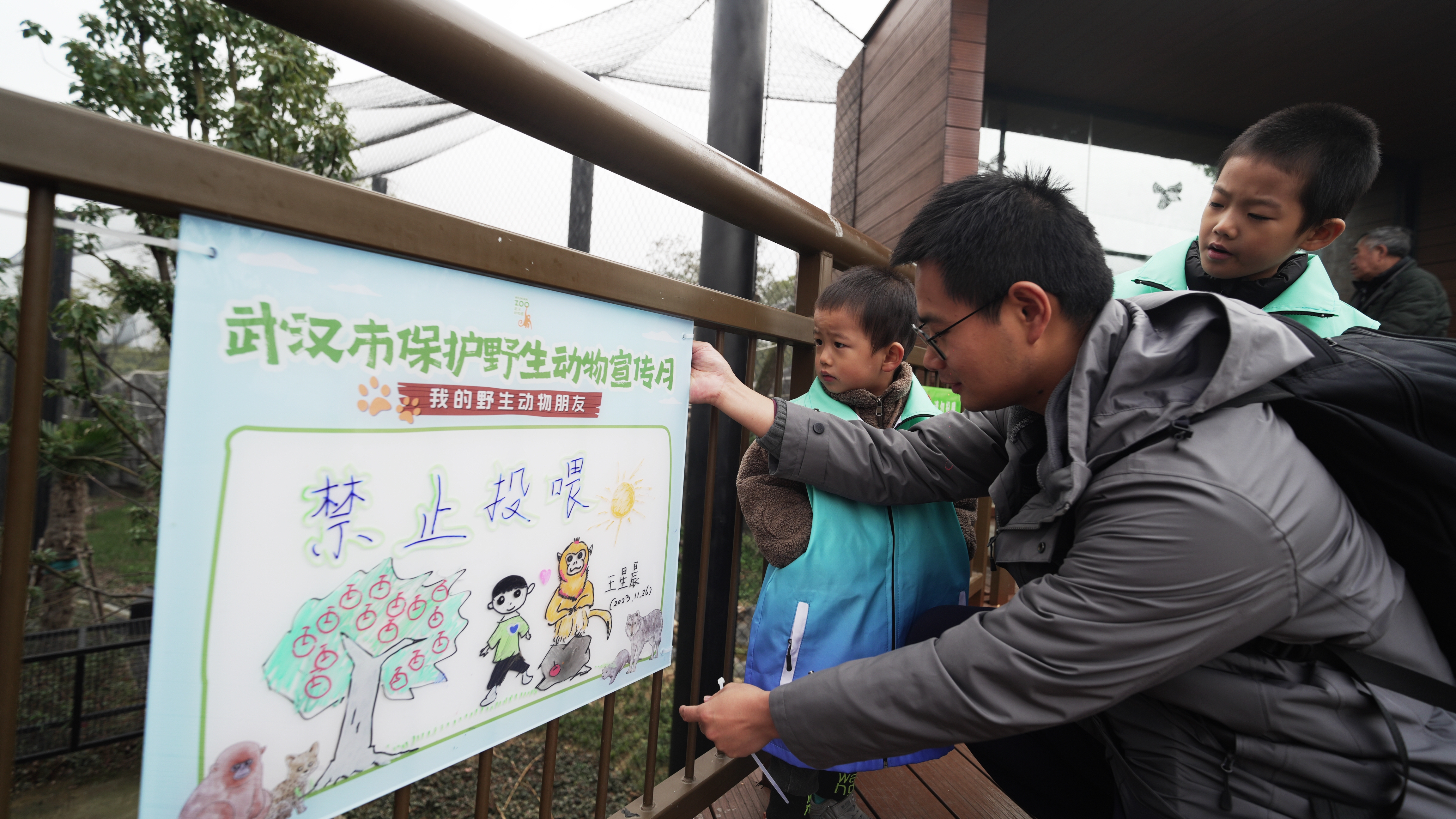 入冬后,旱獭藏进洞里、猕猴抱团取暖、川金丝猴格外兴奋……11月26日,武汉青少年跟随武汉动物园川金丝猴保育员黄磊的脚步,走进亚洲区,了解本土动物在冬天里的自然行为,并为它们手绘科普提示牌。