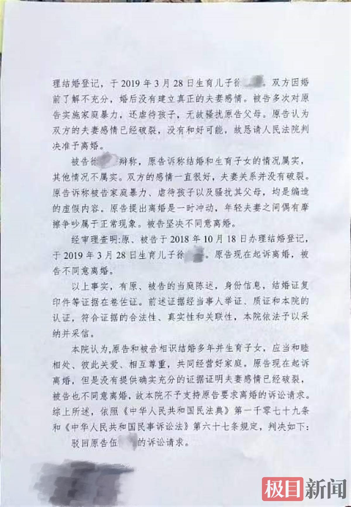 重庆开州法院驳回伍某青离婚请求(受访者提供)