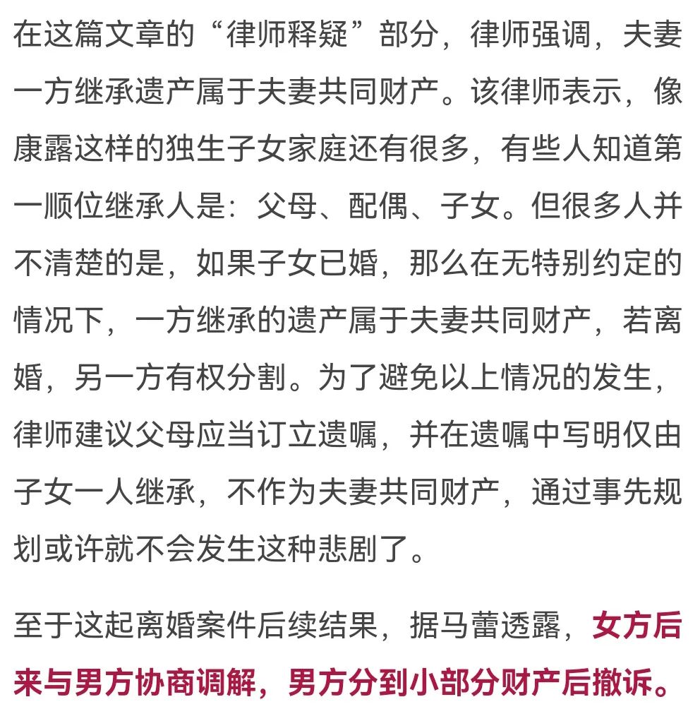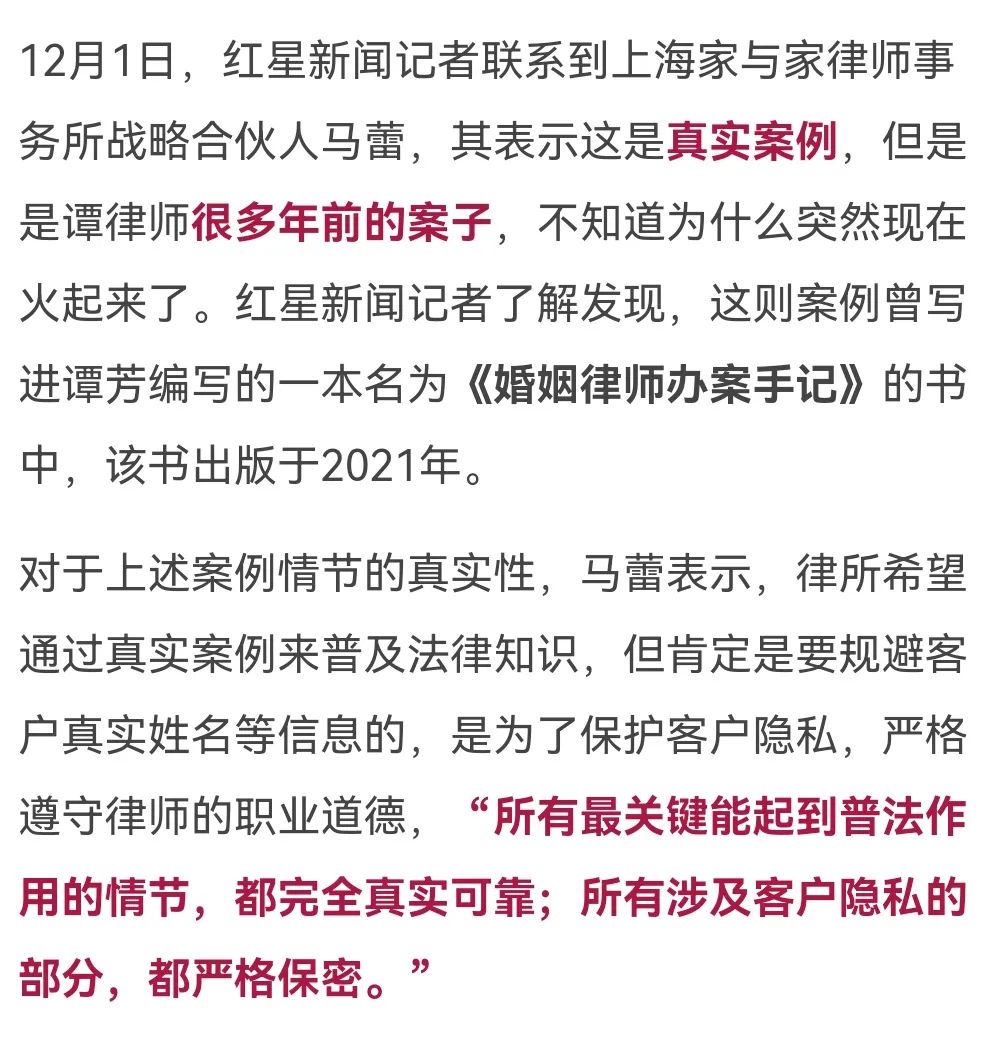 11月30日,《上海法治报》微信公众号上发布了一篇来自上海家与家律师事务所负责人谭芳自述的案件分析,其讲述了上海一女子双亲去世,继承2亿遗产后,面临新婚一年的丈夫提离婚,要求分割遗产的案例。目前“上海独生女继承2亿遗产后被离婚”的话题正在不断发酵,冲上微博热搜,阅读量超3亿。