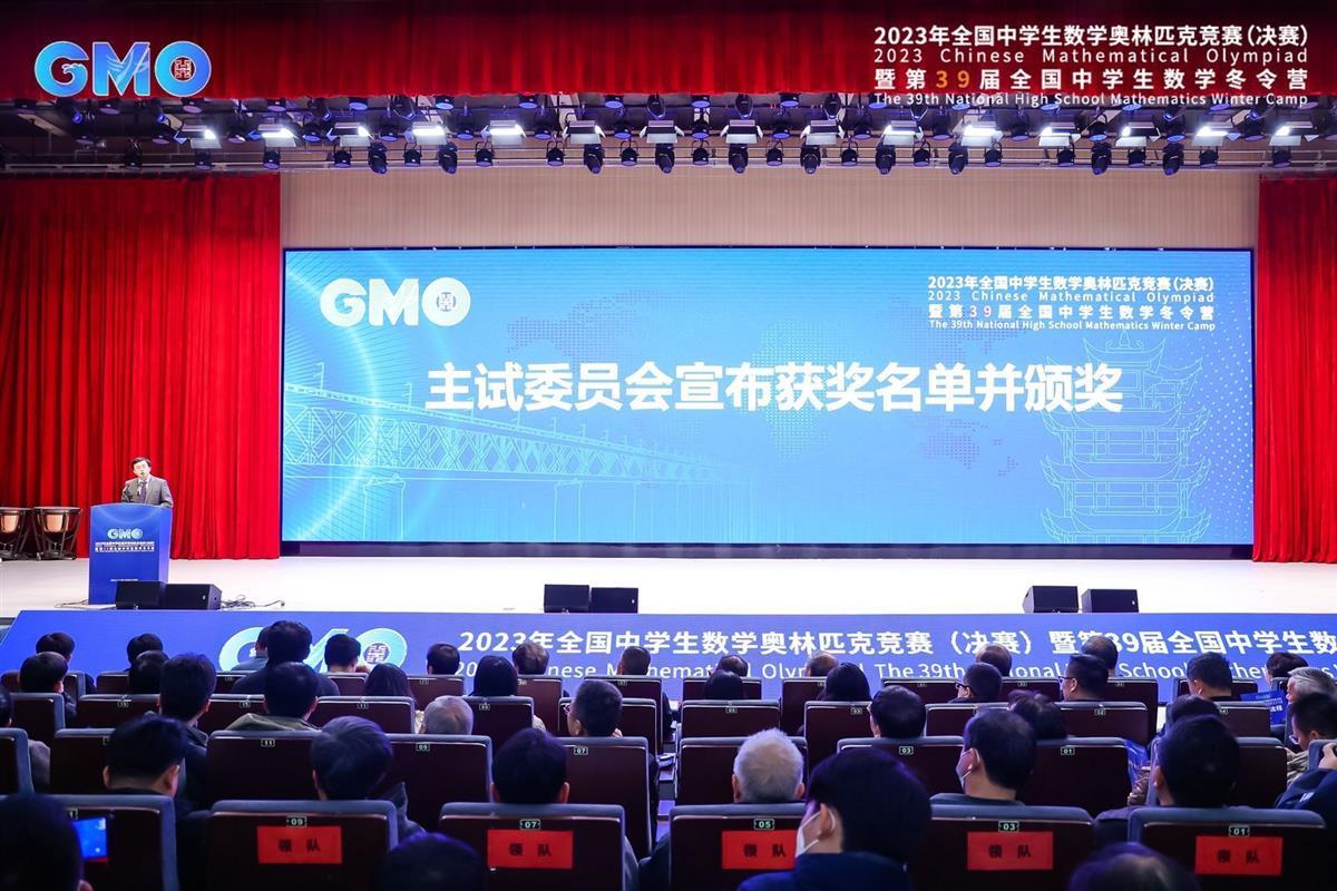 12月2日下午,2023年全国中学生数学奥林匹克竞赛(决赛)暨第39届全国中学生数学冬令营闭幕式在武汉市武钢三中举行。中国数学会副理事长、中国数学会数学竞赛委员会主任彭联刚、武汉市教育局党委书记、局长李超等出席闭幕式。