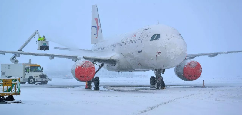在降雪天气发生时,机场要进行跑道和停机坪等区域的除雪工作,同时,也必须对即将起飞的飞机进行除冰雪工作,如果降雪持续时间过长,降雪量过大,除雪也无法保证飞机正常起飞和降落时,则取消飞行,待天气转好,除雪结束后再做飞行计划。