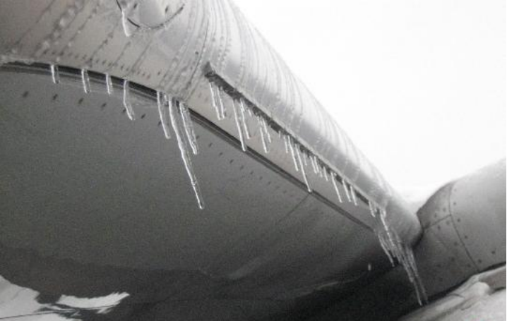 飞机积冰是指在飞机在0℃以下的云中飞行时,飞机的外表通风面凝结冰霜的一种天气现象。飞机积冰通常形成于0℃至-20℃的范围内,强积冰多发生在-4℃至-10℃范围内。一般高度在5000米以下,尤其是3000米左右最易形成积冰,积冰一般出现在飞机机翼、尾翼、发动机进气口等曲率半径较小的部位。