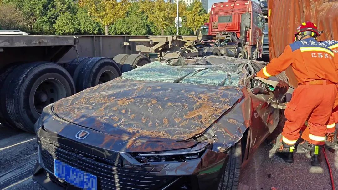 据潇湘晨报报道近日,一段大货车侧翻压扁小轿车,小轿车车内两名人员被消防救援人员成功救出的视频引发网友热议。监控视频显示,红色集装箱货车侧翻后,集装箱将轿车完全压住。12月5日,潇湘晨报记者从苏州市消防救援支队太仓大队了解到,事发时间为12月1日,车内两人被成功救出,无生命危险。“12月5日,我联系了被救的两人,他们说事后他们去医院做了检查,都没受伤,皮外伤都没有。”