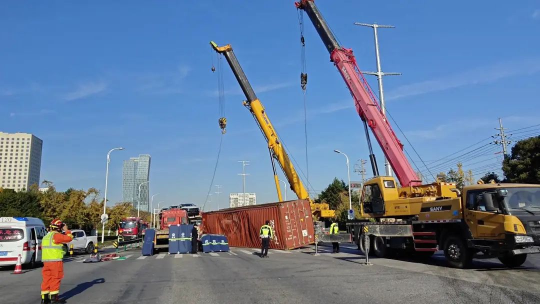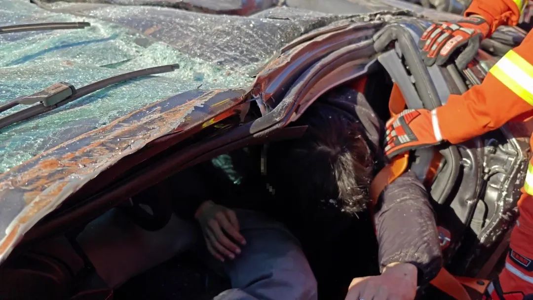 工作人员称,救援人员勘查发现,小轿车内有2名被困人员,并无生命危险。但由于集装箱装载了30多吨的木质板材,箱体压住了小轿车,消防救援人员无法展开救援作业。指挥中心立即通过联勤联动部门调集来2辆吊车,将箱体移开,然后消防救援人员对被困人员迅速实施救援,2名被困人员成功脱困。